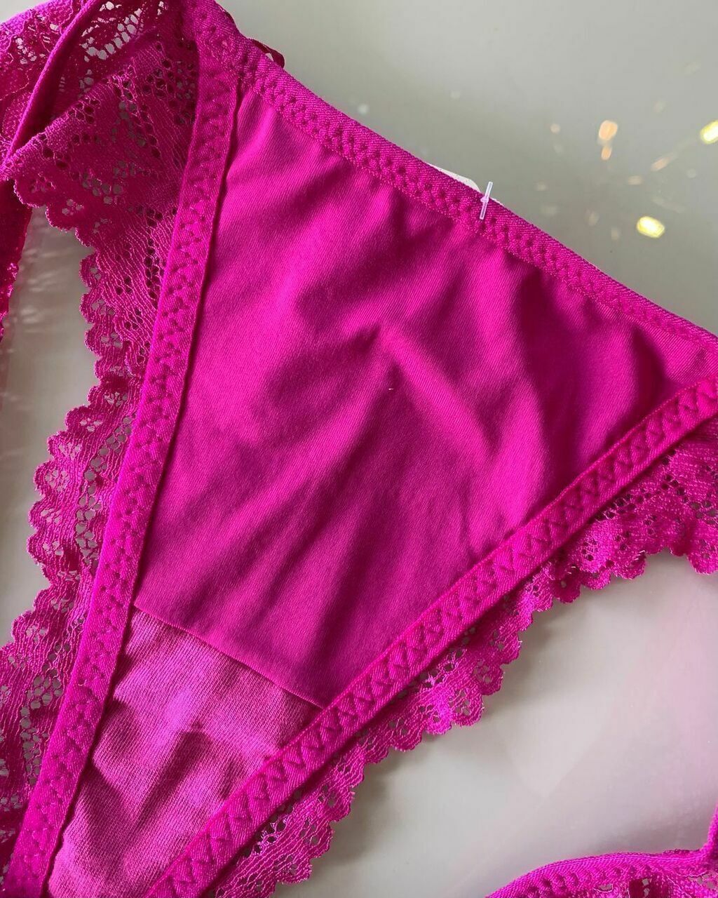 A modelo Gisele veste M, manequim 38. Calcinhas nas cores: Rosa Perla e Magenta.