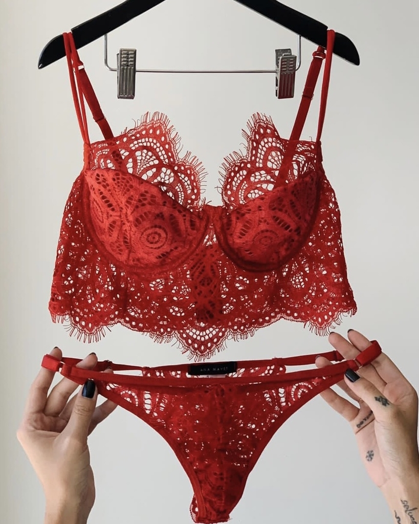 Calcinha Delphine modelo fio, toda rendada e com forro em algodão para maior conforto e segurança. Possui ajuste nas laterais e tira em strappy no cós, criando um design super diferente e sexy.